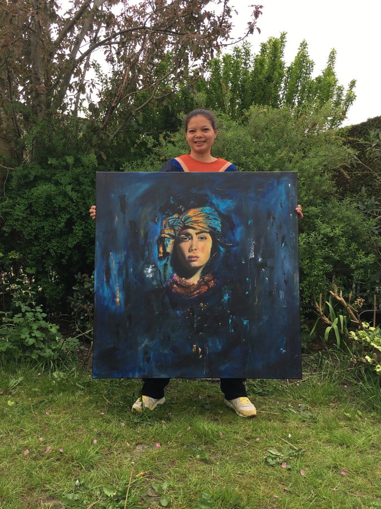 Ik vind het belangrijk dat ik binding heb met wat ik maak. Het moet mij raken. Op dit moment schilder ik graag portretten van vrouwen en kinderen. Ze zijn kwetsbaar en bescheiden, maar tegelijkertijd ook zo krachtig en puur en dat maakt ze zo mooi. Die kracht wil ik graag neerzetten. Ze verdienen het om gezien te worden, dus hoe groter het canvas hoe beter!