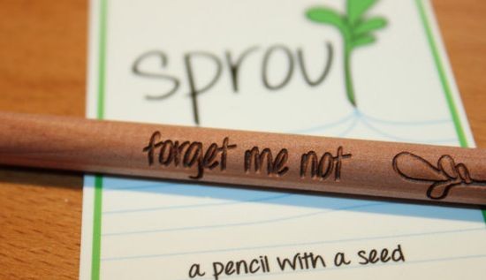 Potlood dat uitgroeit tot een vergeet-mij-nietje